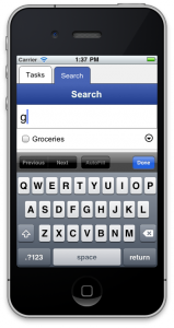 The list construct iterates over the Task.searchPrefix(phrase) collection. This is a special collection that performs a full-text search on all properties that have been marked searchable. Because the collection depends on the value of the phrase variable, the list of updates automatically updates as the user types in his or her search query. We reuse our taskItem control here to render the task.